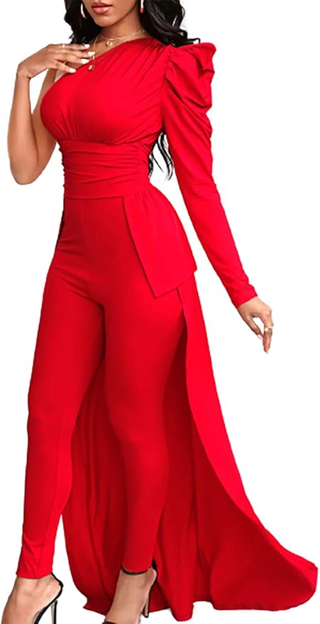 one shoulder plain sheer mesh jumpsuit