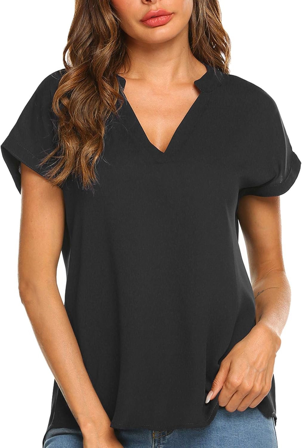 black v neck short sleeve top